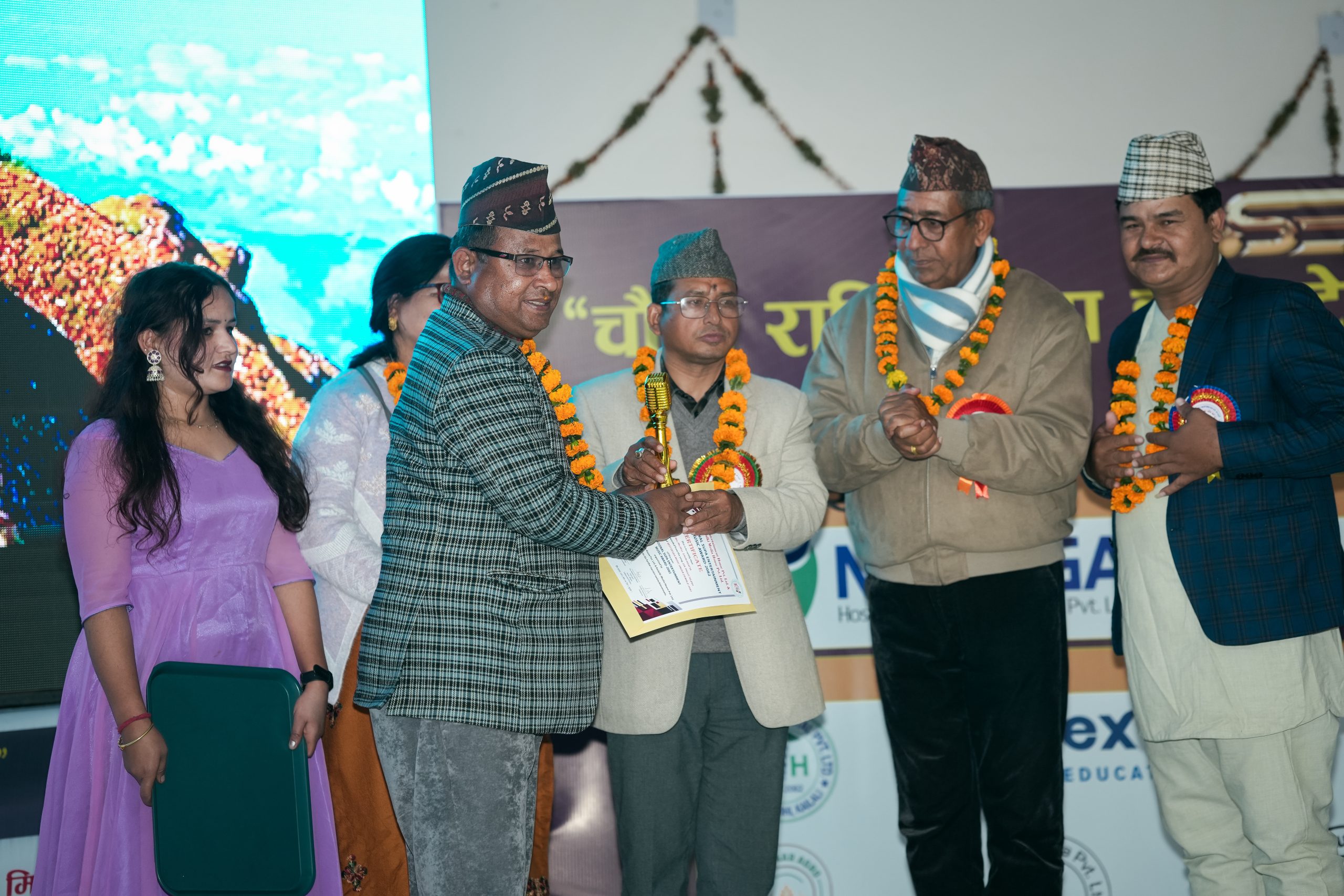 लाइफटाइम एचिभमेन्ट सम्मान टेक बहादुर ऐर, पर्यटन प्रवर्द्धन सम्मान माया प्रकाश भट्ट, शैक्षिक सम्मान प्रेमनिधी ओझा, कला पत्रकारिता सम्मान हिक्मत रावल र गायिका सम्मान हरिना साउद लाई प्रदान गरियो।